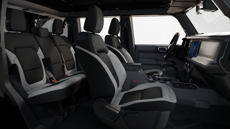 Inside, this Bronco features durable Gray/Black cloth bucket seats designed for comfort and easy maintenance. The cabin offers practical storage solutions and intuitive controls to keep you focused on the road or trail ahead.