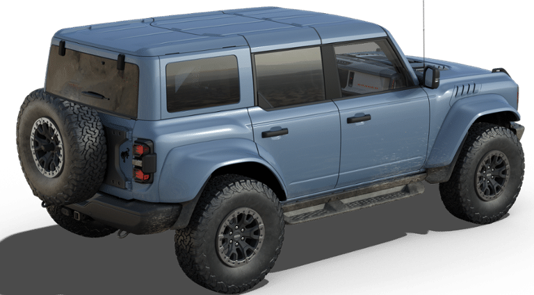 This 2025 Ford Bronco Raptor in Azure Gray Metallic comes with the following features: 3.0L EcoBoost V6 10-Speed Automatic 4WD Equipment Group 374A Lux Package, 12 Speakers, 4-Wheel Disc Brakes, ABS brakes, Air Conditioning, Alloy wheels, AM/FM radio: SiriusXM with 360L, Auto High-beam Headlights, Auto-dimming Rear-View mirror, Automatic temperature control, Body Color-Painted Hard Top, Brake assist, Compass, Connected Navigation, Convertible HardTop, Convertible roof lining, Delay-off headlights, Driver door bin, Driver vanity mirror, Dual front impact airbags, Dual front side impact airbags, Electronic Stability Control, Emergency communication system: 911 Assist, Exterior Parking Camera Rear, Front anti-roll bar, Front Bucket Seats, Front Center Armrest, Front dual zone A/C, Front fog lights, Front License Plate Bracket, Front reading lights, Front wheel independent suspension, Fully automatic headlights, Garage door transmitter, Glass rear window, Hard Top Sound Deadening Headliner, Heated door mirrors, Heated front seats, Heated steering wheel, Illuminated entry, Integrated roll-over protection, Leather Shift Knob, Low tire pressure warning, Marine Grade Vinyl Bucket Seats, Navigation system: Connected Navigation, Occupant sensing airbag, Outside temperature display, Overhead airbag, Overhead console, Panic alarm, Passenger door bin, Passenger vanity mirror, Power door mirrors, Power steering, Power windows, Radio data system, Radio: B&O Sound System by Bang & Olufsen, Rear anti-roll bar, Rear seat center armrest, Rear window defroster, Rear window wiper, Rear-Window Defroster & Washer, Remote keyless entry, Security system, SiriusXM w/360L, Speed control, Split folding rear seat, Steering wheel mounted audio controls, SYNC 4, Tachometer, Telescoping steering wheel, Tilt steering wheel, Traction control, Trip computer, Turn signal indicator mirrors, Variably intermittent wipers, Voltmeter, and Wheels: 17 Black High Gloss-Painted Aluminum.