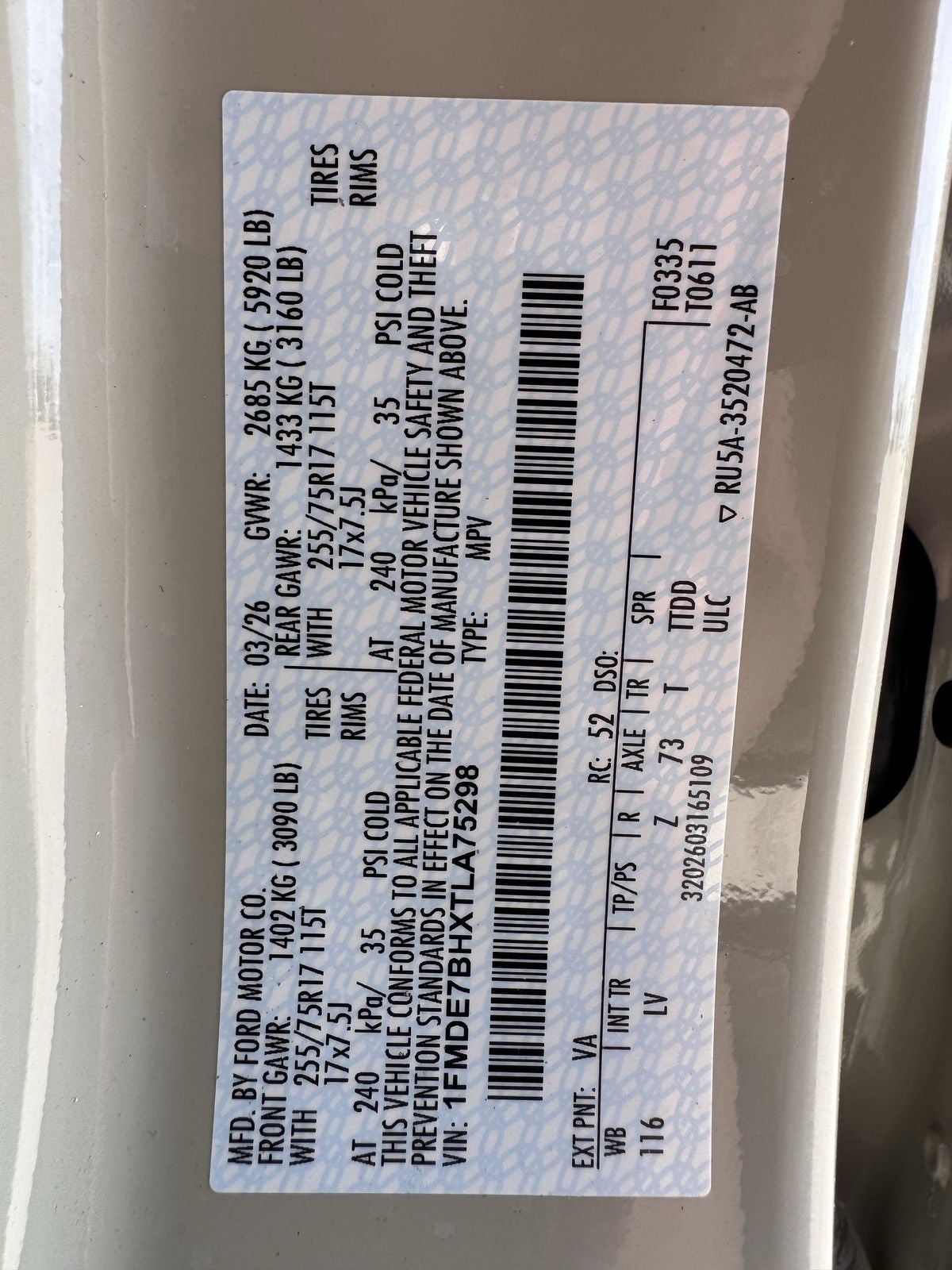 - Gross Vehicle Weight Rating Cap (lbs): 5920