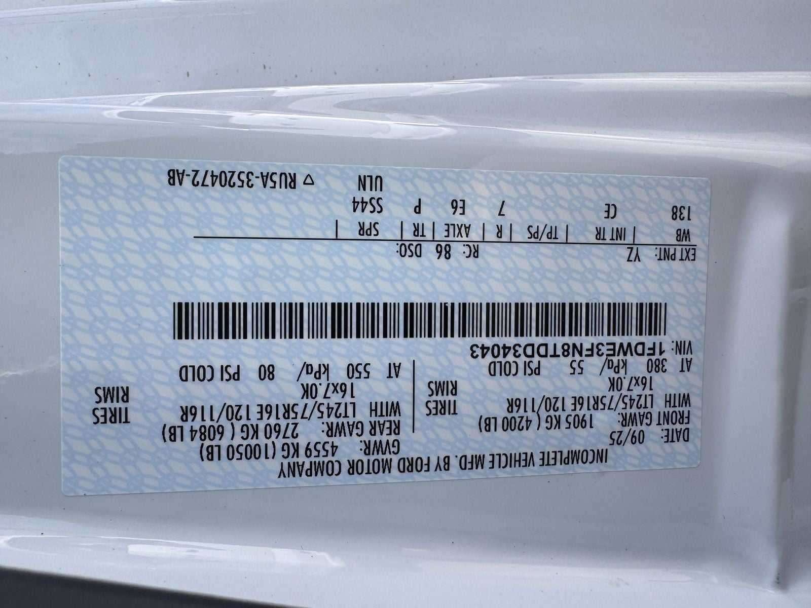 - Rear Tire Order Code: T38
