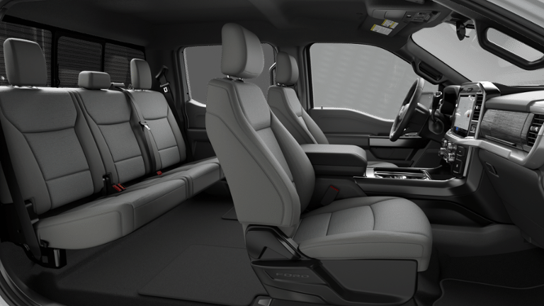Inside the SuperCrew cabin, youll find spacious seating with Smoked Truffle 40/Console/40 configuration, offering both comfort and versatility. The 12 digital cluster and large center touchscreen keep navigation, towing data, and connectivity easily accessible.