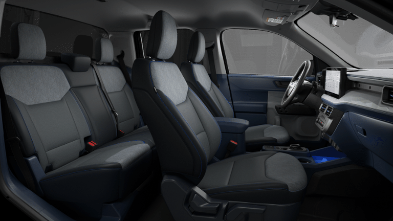 Inside, enjoy a comfortable and functional cabin with Navy Pier and Aspen Gray accents. The Maverick offers smart storage solutions, modern connectivity, and user-friendly controls, making it ideal for both daily commutes and weekend projects.