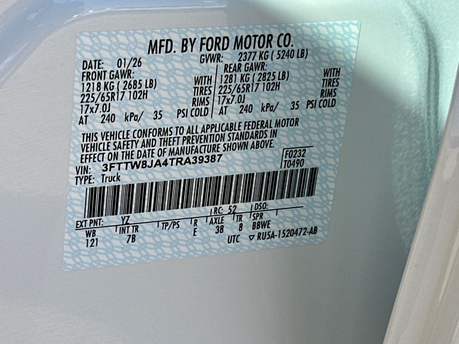 - Gross Vehicle Weight Rating Cap (lbs): 5240