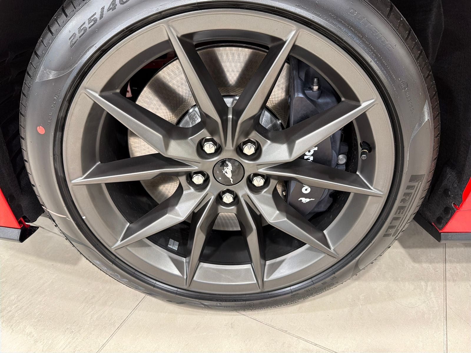 • Race Red Carpeted Floor Mats with Logo: Add a touch of personalization to your Mustang