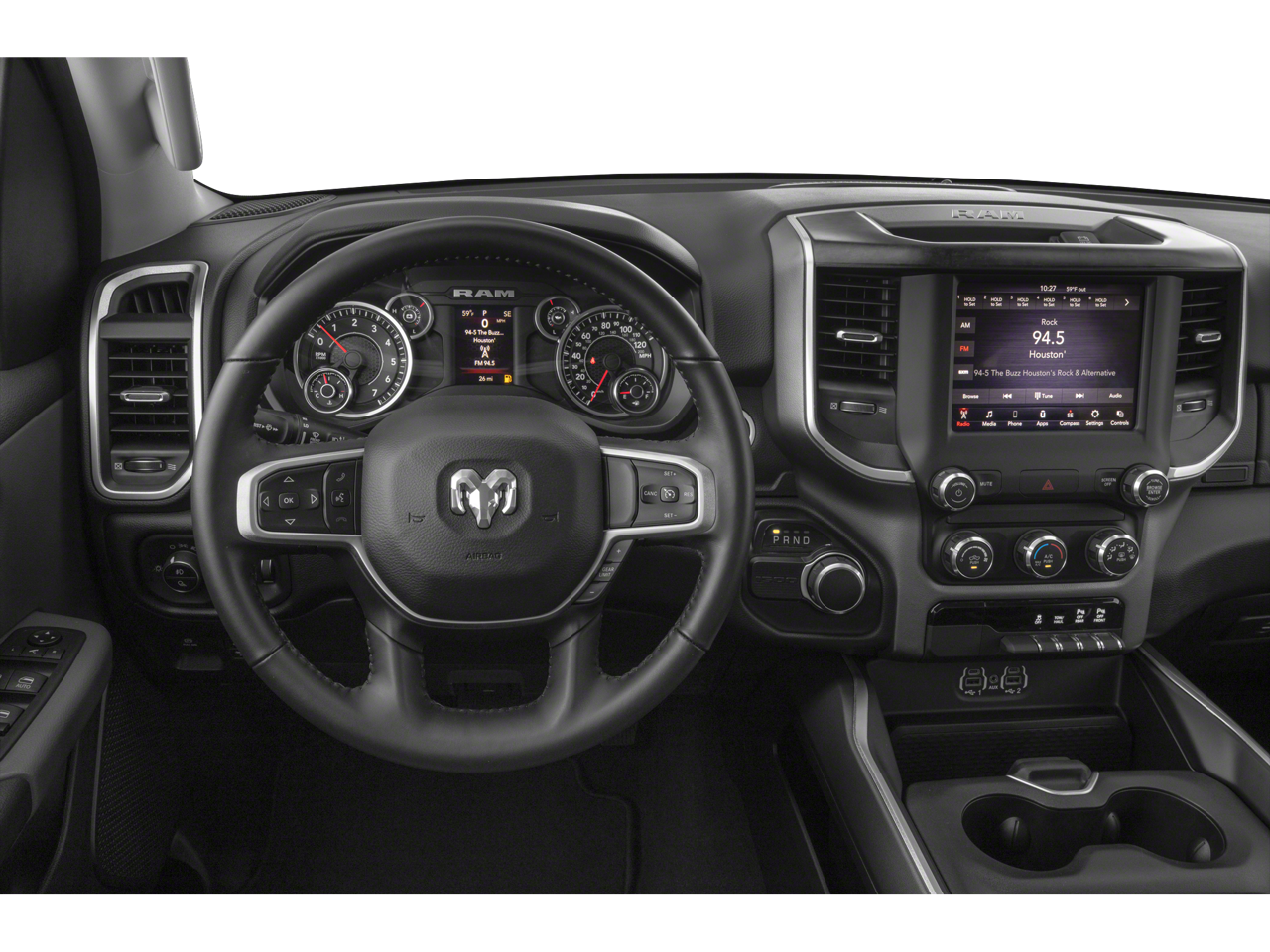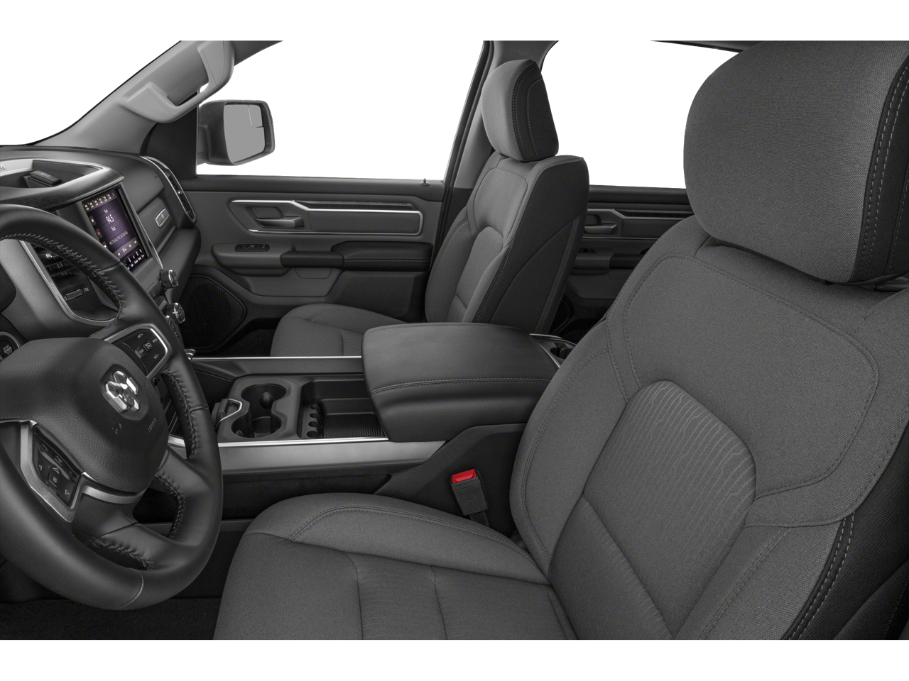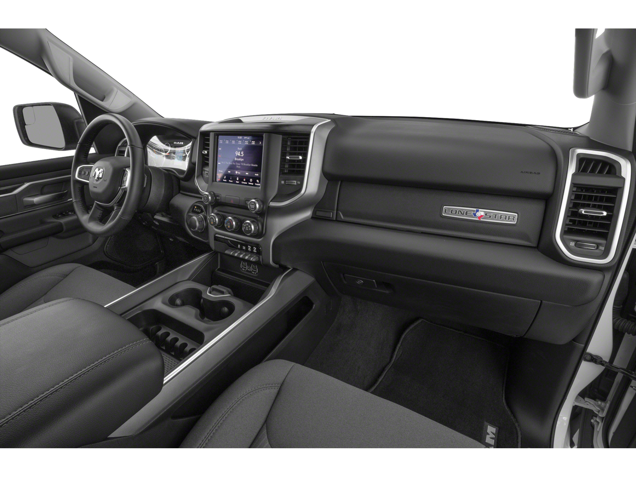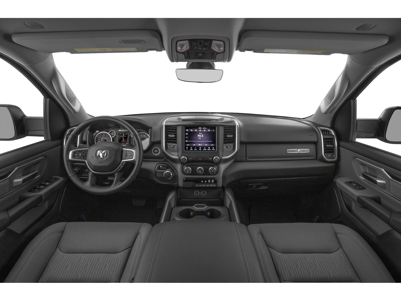This 2019 Ram 1500 Big Horn/Lone Star comes nicely equipped with the following Big Horn Non-BSG Level 2 Equipment Group (DISC) (Cluster 7.0 TFT Color Display, ParkSense Front/Rear Park Assist w/Stop, Radio: Uconnect 4 w/8.4 Display, Remote Start System, and Single Disc Remote CD Player), Premium Lighting Group (Front LED Fog Lamps, LED Reflector Headlamps, and LED Taillamps), Quick Order Package 25Z Big Horn/Lone Star, 3 Rear Seat Head Restraints, 3.21 Rear Axle Ratio, 4 Way Front Headrests, 4-Wheel Disc Brakes, 48V Belt Starter Generator, 6 Speakers, ABS brakes, Air Conditioning, Alloy wheels, AM/FM radio, Brake assist, Bumpers: chrome, Cloth Bench Seat, Compass, Delay-off headlights, Driver door bin, Dual front impact airbags, Dual front side impact airbags, Electronic Stability Control, Front anti-roll bar, Front Center Armrest w/Storage, Front fog lights, Front reading lights, Front Seat Back Map Pockets, Front wheel independent suspension, Fully automatic headlights, GPS Antenna Input, Heated door mirrors, Illuminated entry, Leather steering wheel, Low tire pressure warning, Manufacturer's Statement of Origin, Occupant sensing airbag, Outside temperature display, Overhead airbag, Overhead console, Panic alarm, ParkView Rear Back-Up Camera, Passenger door bin, Passenger vanity mirror, Power door mirrors, Power steering, Power windows, Radio data system, Radio: Uconnect 3 w/5 Display, Rear 60/40 Folding Seat, Rear anti-roll bar, Rear seat center armrest, Rear step bumper, Remote keyless entry, Speed control, Split folding rear seat, Tachometer, Telescoping steering wheel, Tilt steering wheel, Traction control, Trip computer, Variably intermittent wipers, Voltmeter, and Wheels: 18 x 8