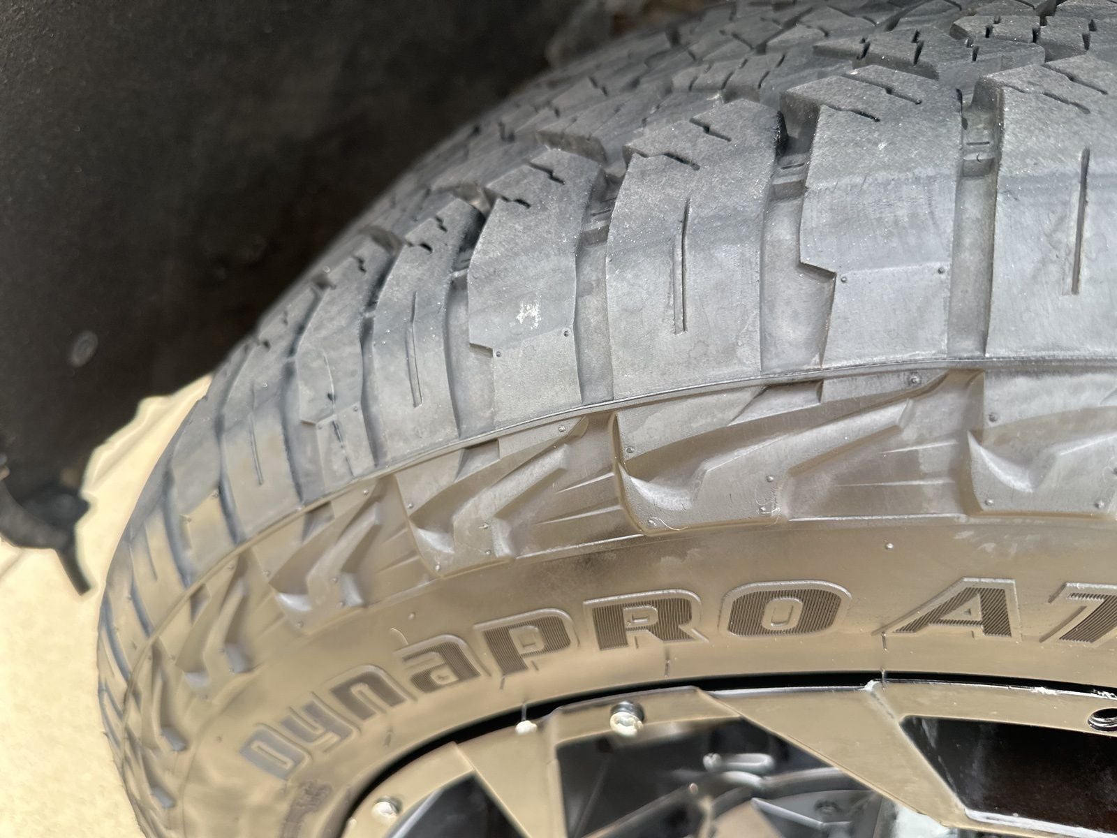 - Tires, LT275/65R18C MT blackwall Goodyear Wrangler DuraTrac
