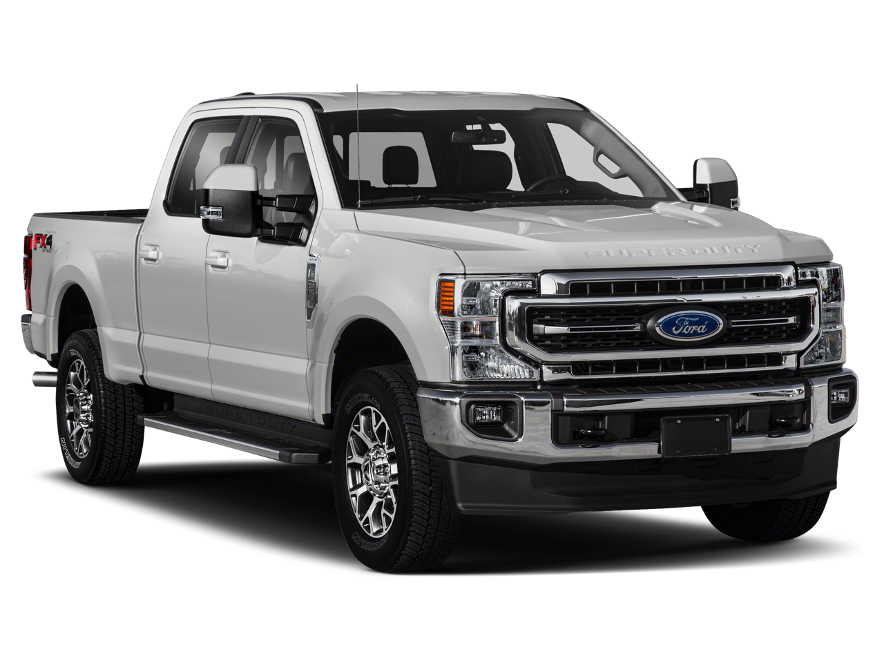 This 2020 Ford F-250SD Lariat in Silver comes with the following features: Power Stroke 6.7L V8 DI 32V OHV Turbodiesel 10-Speed Automatic 4WD Chrome Package (6 Angular Chrome Step Bars, Body-Color Door Handles w/Chrome Insert, Chrome Exhaust Tip, PowerScope Trailer Tow Mirrors w/Heat, Unique Chrome Mirror Caps, and Wheels: 18 Chrome PVD Aluminum), FX4 Off-Road Package (Hill Descent Control, Off-Road Specifically Tuned Shock Absorbers, and Unique FX4 Off-Road Box Decal), GVWR: 10,000 lb Payload Package, Order Code 608A, 4WD, 10 Speakers, 110V/400W Outlet, 3.73 Axle Ratio, 397 Amp Alternators, 4-Wheel Disc Brakes, 6 Angular Chrome Step Bar, ABS brakes, Adaptive Steering, Adjustable pedals, Air Conditioning, Alloy wheels, AM/FM radio: SiriusXM, Auto High-beam Headlights, Auto-dimming Rear-View mirror, Automatic temperature control, Brake assist, Bumpers: chrome, Compass, Delay-off headlights, Driver door bin, Driver vanity mirror, Dual front impact airbags, Dual front side impact airbags, Electronic Stability Control, Emergency communication system: SYNC 3 911 Assist, Exterior Parking Camera Rear, Flow-Through Console, Front & Rear Wheel Well Liners (Pre-Installed), Front anti-roll bar, Front Bucket Seats, Front Center Armrest, Front dual zone A/C, Front fog lights, Front Leather Seating Surfaces 40/Console/40, Front reading lights, Fully automatic headlights, Heated door mirrors, Illuminated entry, Leather steering wheel, LED Box Lighting, Low tire pressure warning, Outside temperature display, Overhead airbag, Overhead console, Panic alarm, Passenger door bin, Passenger vanity mirror, Power door mirrors, Power driver seat, Power passenger seat, Power steering, Power windows, Radio data system, Radio: B&O System by Bang & Olufsen, Rear CHMSL Camera, Rear Parking Sensors, Rear reading lights, Rear seat center armrest, Rear step bumper, Rear window defroster, Remote keyless entry, Remote Start System, Security system, SiriusXM Radio, Speed control, Split folding rear seat, Steering wheel mounted audio controls, SYNC 3 Communications & Entertainment System, Tachometer, Tailgate Step & Handle, Telescoping steering wheel, Tilt steering wheel, Traction control, Trip computer, Turn signal indicator mirrors, Variably intermittent wipers, Voice-Activated Touchscreen Navigation System, Wheels: 18 Bright Machined Cast Aluminum, and Wheels: 20 Chrome PVD Aluminum.