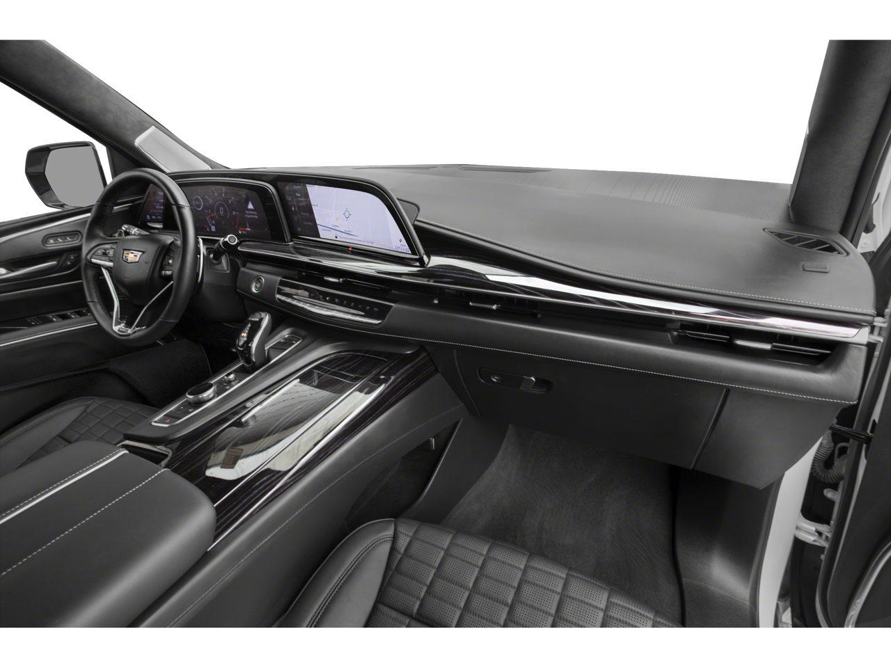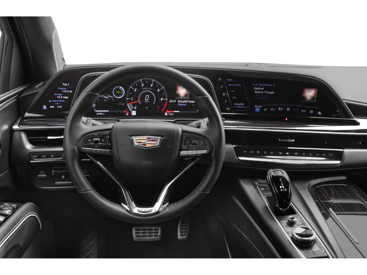 Step inside the Escalade V-Series and be captivated by the luxurious interior, featuring premium materials and thoughtful design elements that cater to your every need. The spacious cabin, with its Platinum Interior Trim and genuine wood accents, creates an atmosphere of unparalleled refinement.