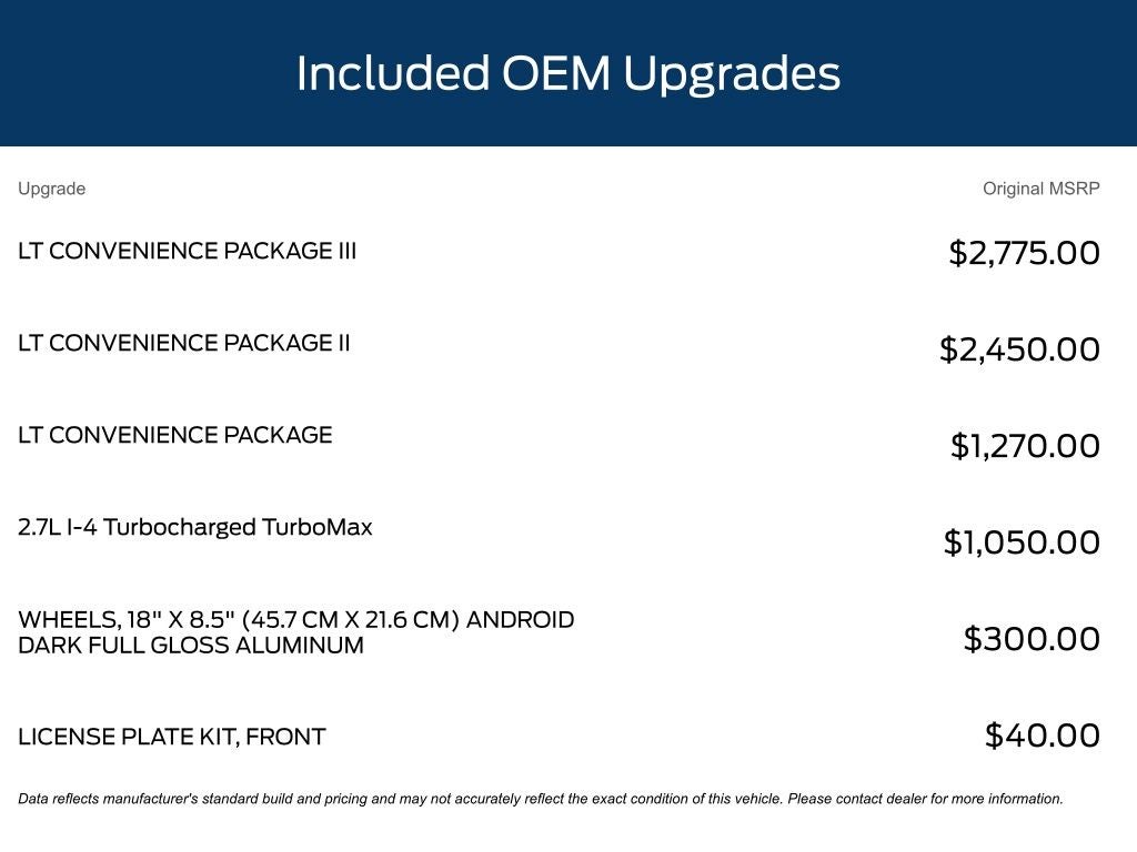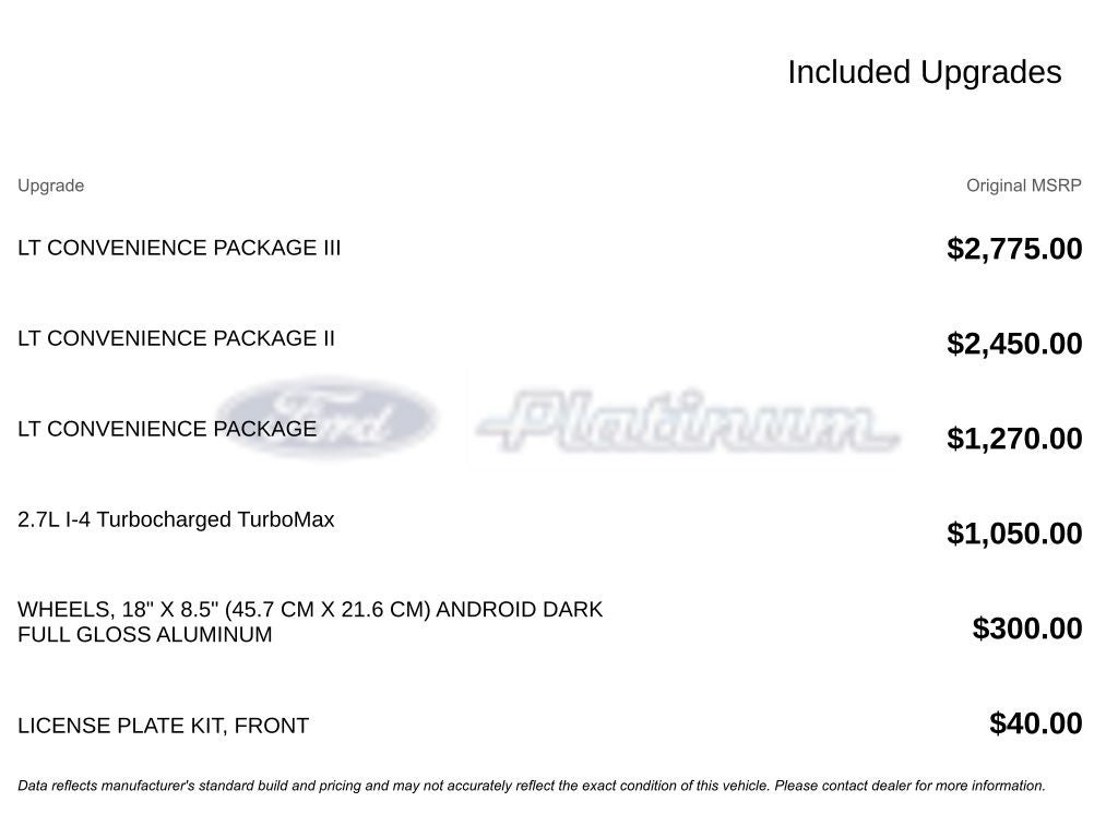 - LT Convenience Package II, LT Convenience Package, and LT Convenience Package III