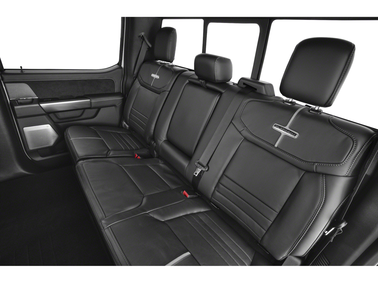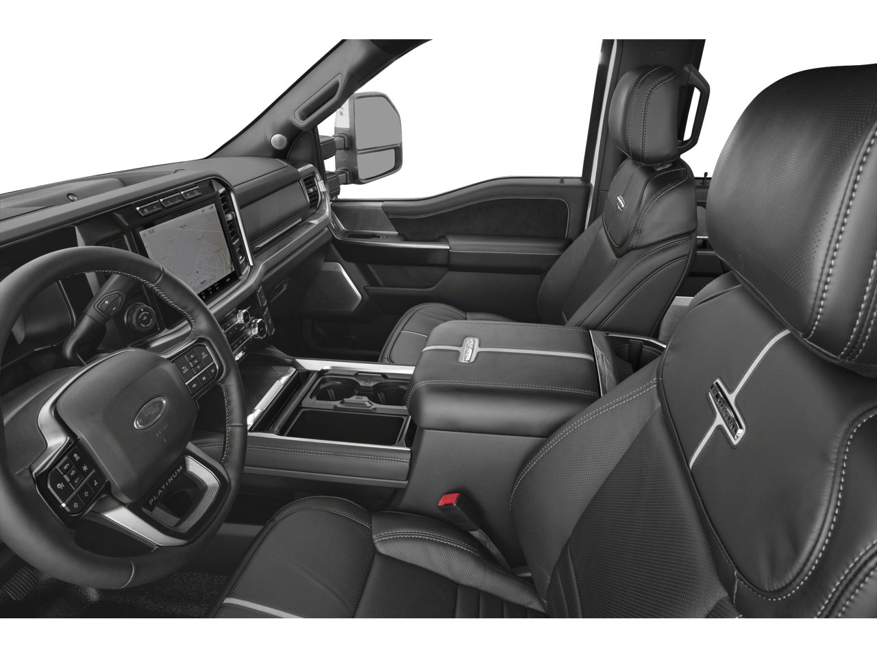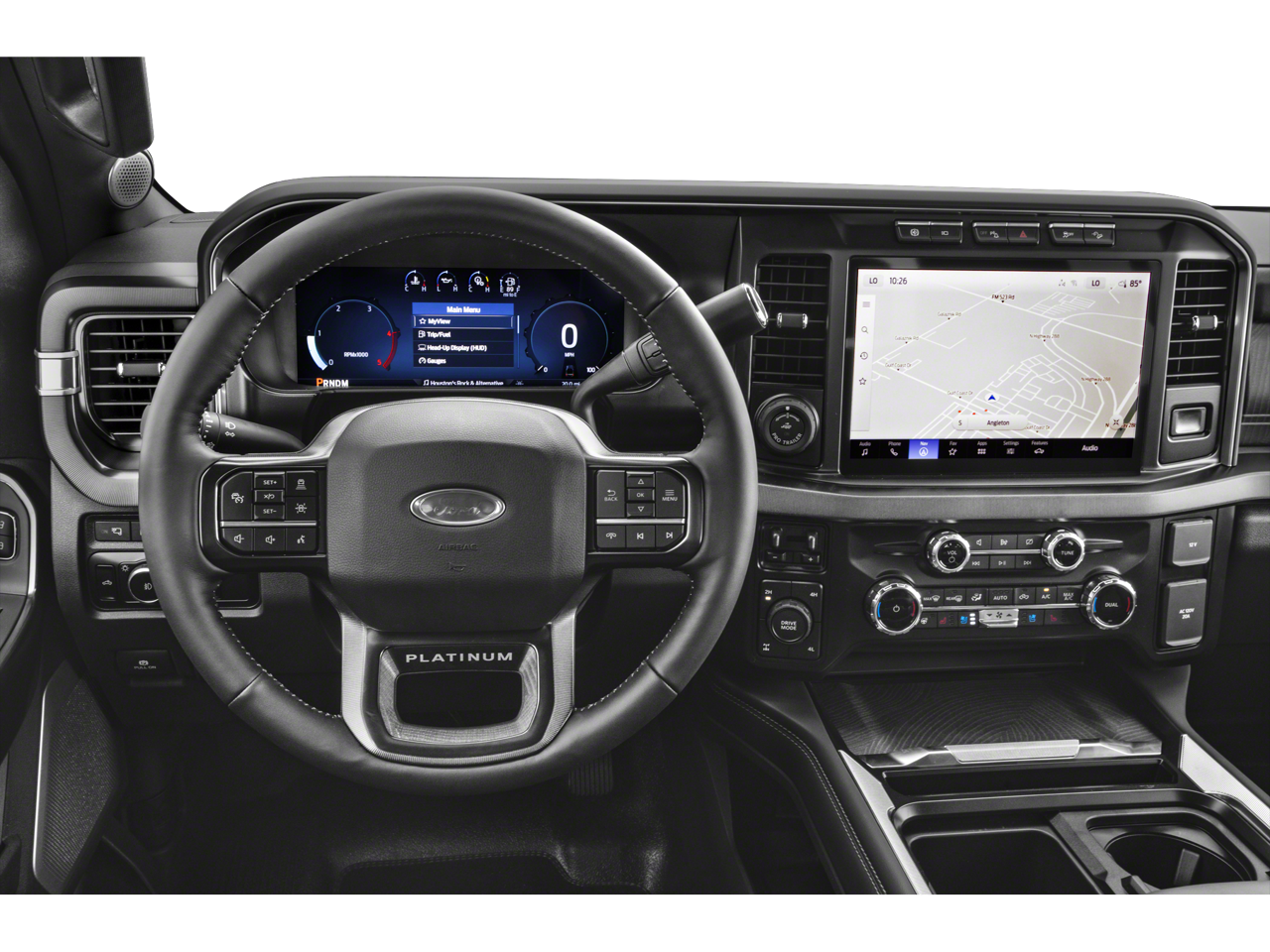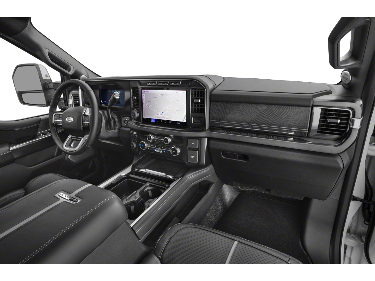 Inside the spacious Crew Cab, you’ll find premium comfort with Platinum leather seating, Max Recline driver and passenger seats, a heated leather-wrapped steering wheel, and dual-zone automatic climate control. The truck also features a 12 touchscreen with SYNC® 4, Connected Navigation, B&O Unleashed premium sound system, head-up display, and wireless charging for a modern, connected driving experience.