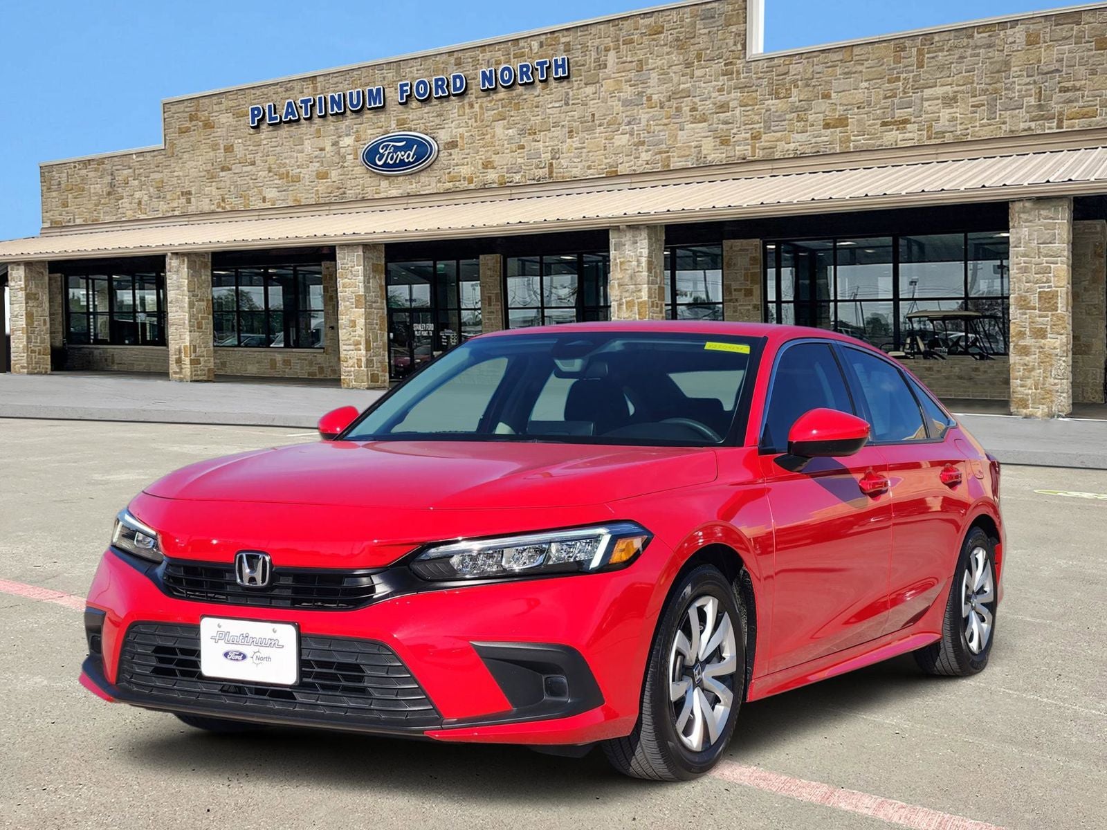 This 2024 Honda Civic LX in Rallye Red comes with the following features: 2.0L I4 DOHC 16V i-VTEC CVT FWD Civic LX, Ford Blue Advantage: Blue Certified Certified, 4D Sedan, 2.0L I4 DOHC 16V i-VTEC, CVT, FWD, Rallye Red, Black Cloth, 16 Wheels w/Full Covers, 4 Speakers, 4-Wheel Disc Brakes, ABS brakes, Adaptive Cruise Control: Adaptive Cruise Control (ACC) with Low-Speed Follow, Air Conditioning, AM/FM radio, Apple CarPlay/Android Auto, Auto High-beam Headlights, Automatic temperature control, Brake assist, Bumpers: body-color, Cloth Seating Surfaces, Delay-off headlights, Driver door bin, Driver vanity mirror, Dual front impact airbags, Dual front side impact airbags, Electronic Stability Control, Emergency communication system: HondaLink, Exterior Parking Camera Rear, Four wheel independent suspension, Front anti-roll bar, Front Bucket Seats, Front Center Armrest, Front reading lights, Fully automatic headlights, Illuminated entry, Knee airbag, Low tire pressure warning, Occupant sensing airbag, Outside temperature display, Overhead airbag, Panic alarm, Passenger door bin, Passenger vanity mirror, Power door mirrors, Power steering, Power windows, Radio data system, Radio: 160-Watt Audio System, Rear anti-roll bar, Rear side impact airbag, Rear window defroster, Remote keyless entry, Security system, Speed control, Speed-sensing steering, Steering wheel mounted audio controls, Tachometer, Telescoping steering wheel, Tilt steering wheel, Traction control, and Trip computer. Certified. Odometer is 13841 miles below market average!