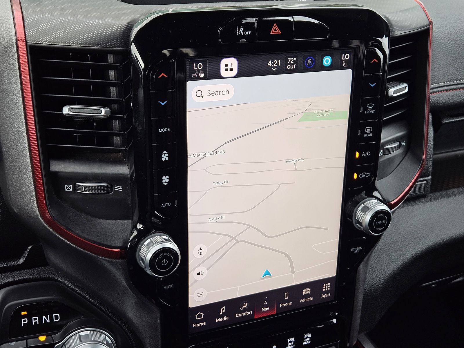 Inside the spacious Crew Cab, you’ll enjoy comfort-focused features like power adjustable front seats, heated front seats, heated steering wheel, and dual-zone automatic climate control. Technology is front and center with the massive 12-inch Uconnect® touchscreen, Apple CarPlay®, Android Auto™, Bluetooth® connectivity, premium audio, and wireless charging—keeping you connected wherever the road takes you.